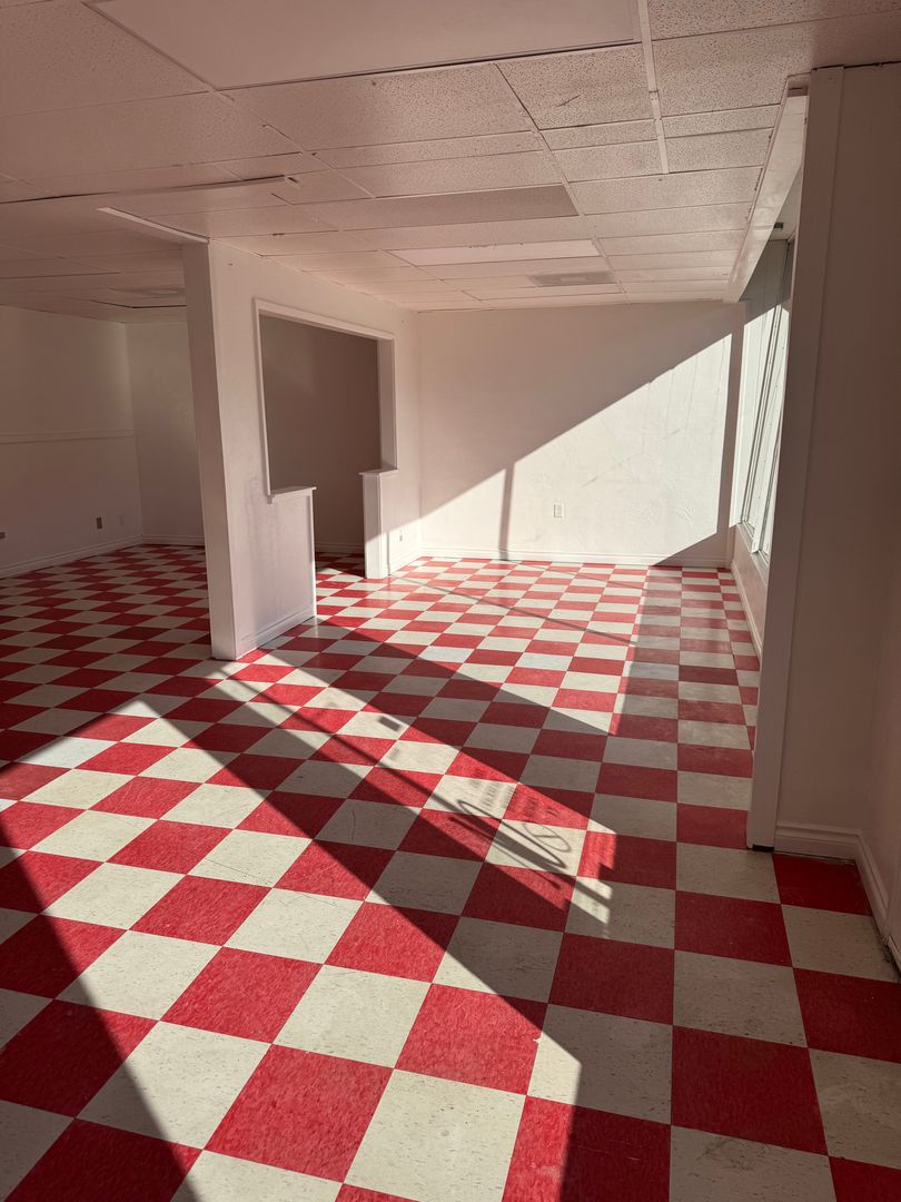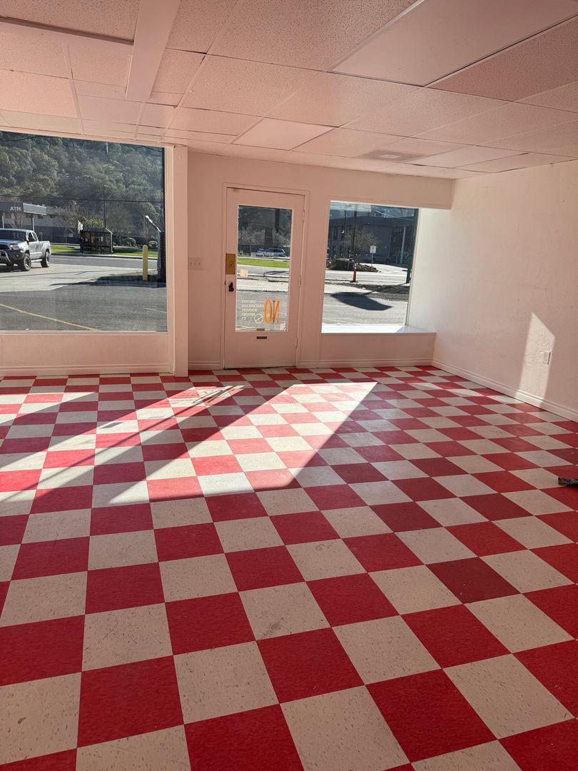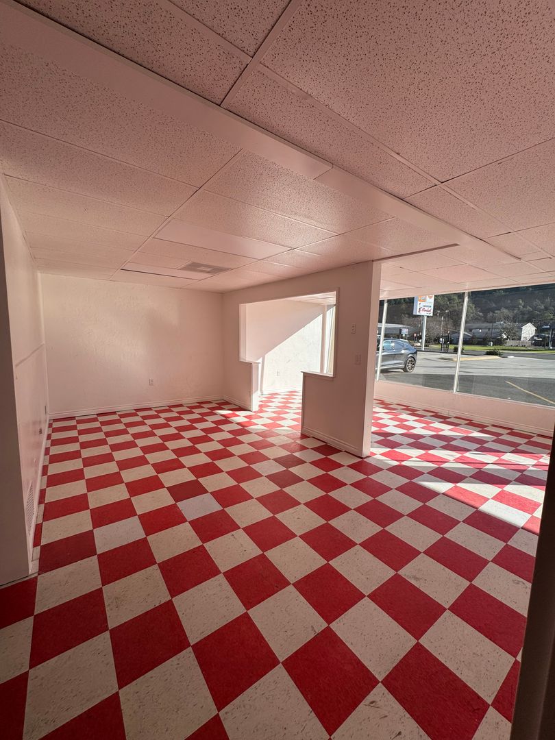 About 1050 Sq. ft. Commercial Space with large open lobby. Previously tattoo shop, but can be remodeled as needed. New hvac unit.
